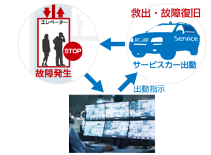 弊社では、このような不足の事態に対し、遠隔監視による故障の発報・エレベーターとカゴ内の直接電話・サービスマンの計画的な配置を実施しており、迅速な対応をとれるようにしています。     ※24時間緊急対応